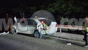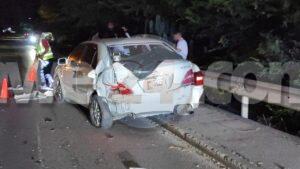 Diaranson anochi a drenta informe di un accidente na Piedra Plat. Mesora a dirigi un patruya na e sitio. Na yegada di e patruya a bin compronde cu un chauffeur di un pick-up shinishi lo no a regula velocidad ni mantene distancia y a dal basta duro riba un Toyota Blanco. E chauffeur di e pick-up lo a bandona sitio pero testigonan a duna polis informacion completo di e sospechoso. E persona no a desea pa atencion medico pero polis a bis’e lo ta miho pa e bai hospital check toch ya cu e impacto tabata fuerte. Polis a tuma datos di e accidente aki.