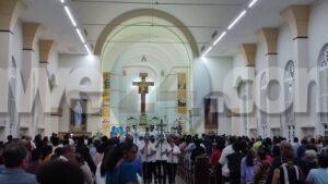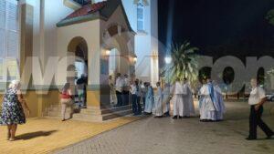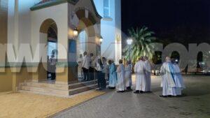 Diasabra anochi despues di cu debi na e condicion di e tempo a move e sitio pa e celebracion di e Birgen di e Santo Rosario pa Pro-Catedral San Francisco di Asis na Oranjestad. Esaki a conta un multitud di feligresnan y devotonan fiel cu a asisti na e bunita ceremonia di Celebracion.