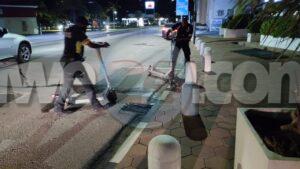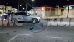 Diasabra madruga a drenta informe un accidente na LG Smith Boulevard dilanti waf. Mesora a dirigi un patruya na e sitio. Na yegada di e patruya a bin compronde cu chauffeur di un SUV lo a topa cu stepnan riba caminda y a brake pero e Suzuki Jimmy su tras no a brake na tempo y a dal tras di e SUV. Prome e chauffeur kier a regl’e entre nan mes ya cu e daño no tabata grandi pero a dicidi toch di yama polis y seguro. E chauffeur di e Suzuki Jimmy lo a bandona e sitio prome cu polis a yega pero polis tin e number di auto. Polis a tuma datos di e accidente aki y tin e caso bao investigacion.