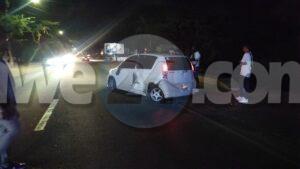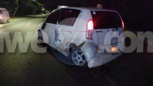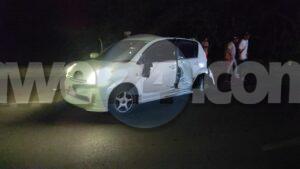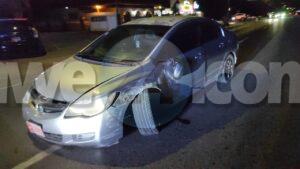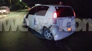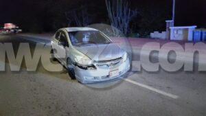 Dialuna madruga a drenta informe di un accidente cu hende herida na Shaba, mesora a dirigi tanto polis como ambulans na e sitio. Na yegada di e patruya a bin compronde cu e chauffeur di e Honda shinishi a perde control bay, baha caminda y bai dal riba e auto blanco maneha pa un dama den e direccion contrario. Debi na e impacto e dama a spanta y a resulta herida. Na yegada di e ambulans a atende e dama y a transporte pa hospital. E chauffeur no por a supla y a ser considera como burachi den e grado di mas halto y a detene. Un amigo cu tabata hunto cun’e tambe na momento cu a bay detene a core sconde den mondi pero toch polis a logra gar’e y a detene tambe.