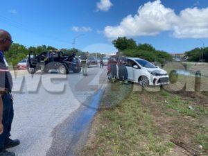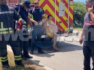 Diamars merdia a drenta informe di un accidente cu hende herida pazuid di e rotonde Palm Beach, mesora a dirigi tanto polis, bombero como tambe ambulans na e sitio. Na yegada di e patruya a bin compronde cu aki ta trata di un accidente unda cu saliendo for di e rotonde pa via di un otro auto e dama a perde control y a bay cay den un plas cu awa den e median. Bomberonan a rescata e dama for di e auto y a pone riba tera firme. Na yegada di e ambulans nan a atende e dama y despues a bay cu unb familiar pa un revision na hospital.