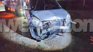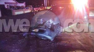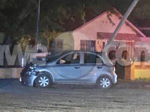 Diadomingo anochi a drenta informe di un accidente na Moko, mesora a dirigi un patruya na e sitio. Na yegada di e patruya acompronde cu aki ta trata di un dama chauffeur di un Nissan March cu a baha caminda y a bay dal riba un palo di lus lagando esaki ta colga den banda. E dama chauffeur mes a bay for di e sitio. Ora a controla e number a logra haya sa cu e auto ta di un dama cu durante di dia e tabata envolvi den un asunto di problema cu su pareha. Polis a bay na e adres di e dama y a logra hay’e na e cas. Mesora a detene y a bay warda di polis cun’e. Afortunadamente ningun hende a resulta herida pero algun cas den e area a perde nan coriente pa algun ora.