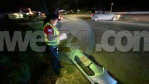Diahuebs madruga a drenta informe di un accidente na e rotonde Tanki Flip, mesora a dirigi patruyanan na e sitio. Na caminda pa e sitio a drenta un otro informe unda cu e brommer ta purba di bandona e sitio, polis a bay cu mas urgencia na e sitio pero na nan yegada ya ela bay for di e sitio. Afortunadamente ningun hende a resulta herida. Pero a logra wak e number di e brommer y a duna polis esaki pa asina yega na esun responsable!