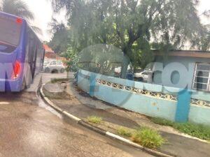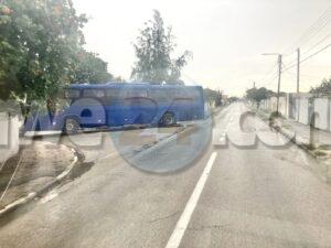 Diaranson mainta a drenta informe di un accidente na Sanicolas, mesora a dirigi un patruya na e sitio. Na yegada di e patruya a bin compronde cu e bus a bay bira na man drechi y mester a usa ambos banda di caminda y a bay dal frontal riba un Nissan March contrario. Afortunadamente ningun hende a resulta herida.