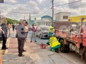 Diaranson atardi a drenta informe di un incidente cu hende herida dilanti di Top FM na Santa Cruz, mesora a dirigi tanto polis como ambulans na e sitio. Na yegada di e patruya a bin compronde cu durante cu e truck ta core y kizas e porta mal sera na un dado momento e porta a dal habri y e hobencita pasahero sin seatbelts bisti a sali cay for di e auto. Aparentemente e tire a pasa riba e pia di e damita. Na yegada di e ambulans nan a atende e dama y a transporte levemente pa hospital pa eynan mira si e pia a fractura of no.