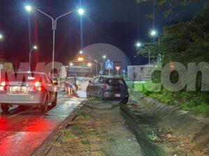 Diadomingo madruga a drenta informe di cu un auto lo a caba di cay den e greppel pabao di rotonde Hato, mesora a dirigi un patruya na e sitio. Na yegada di e patruya a bin compronde cu e chauffeur bayendo pariba yegando e rotonde a baha caminda bay cay den e greppel y a bandona e sitio lagando e auto atras. Despues di algun ora ela bolbe pa buska su auto pero cu un takelwagen. Afortunadamente ningun hende a resulta herida.