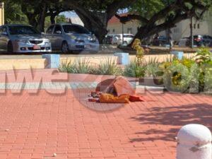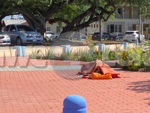 Diaranson mainta hopi ta esnan cu a mira un persona drumi den e solo bao un dekbed na Plaza Juan Pablo Duarte den Van Leeuwenhoekstraat. Ta trata aki di e conosido adicto ambulante “Budin” hopi hende a keda preocupa p’e pero un rato despues por a mir’e ta cana rond.