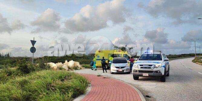 Diabierna atardi durante patruya pasando di rotonde Ser’i Teishi pa Barcadera a bin topa cu un dama cu lo a bira malo tras di stuur y a para banda di caminda yama avisa. Na yegada di e ambulans nan a atende e dama y a transporte pa hospital.