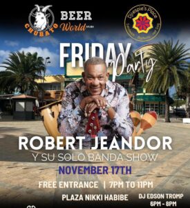 No perde e gran ambiente cu lo tin awenochi na Djiespie’s Place, riba e anochi aki lo tin presentacion di Robert Jeandor y su Solo Banda Show cual lo yena e plaza cu ambiente unico manera Robert so POR! Yega tempran pa bo haya e mihor lugar. Sigur cu boso lo pasa bon, YEGA!!!!!