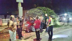 Diasabra madruga a drenta informe di un accidente na Paradera, mesora a dirigi un patruya na e sitio. Na yegada di e patruya a bin compronde cu aki ta trata di un accidente unda cu e chauffeur burachi a perde control baha caminda dal palo di lus y riba un mata. Afortunadamente ningun hende a resulta herida. Polis a detene e chauffeur pa ta burachi y causa un accidente.