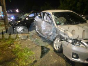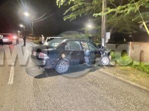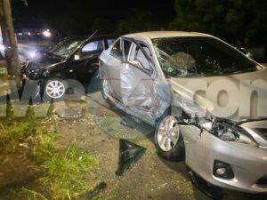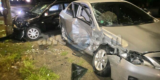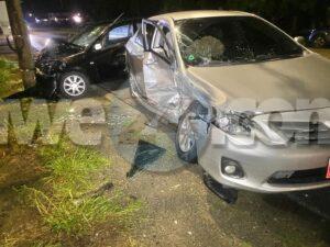 Dialuna madruga a drenta informe di un accidente cu hende herida y pega den auto, mesora a dirigi tanto polis, ambulans como tambe e equipo di rescate di bombero. Na yegada di e patruya a bin compronde cu aki ta trata di un accidente unda e chauffeur di un Toyota Corolla bayendo nort rumbo pa su Gym a hay’e ta desvia pa un cacho cu a crusa su dilanti y ela perde control slip di banda y a bay dal dilanti riba e Mitsubishi Lancer di e dama bayendo trabao y a mand’e bay dal riba un palo di lus tambe. Door di e impacto e dama a keda pega den e auto y no por a sali. Na yegada di e ambulans nan a cuminsa atende cu e victimanan mientras na yegada di bombero a logra saca e dama y a transporte pa hospital.