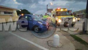 Diasabra mainta a drenta informe di un accidente cu hende herida banda di Mundo Nobo na Santa Cruz, mesora a dirigi tanto polis como ambulans na e sitio. Na yegada di e patruya a bin compronde cu aki ta trata di un accidente pa falta di preferencia entre un Nissan March y un Toyota Yaris. Debi na e impacto un persona a resulta levemente herida. Na yegada di e ambulans nan a atende e victima na e sitio mes.