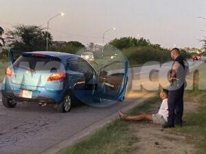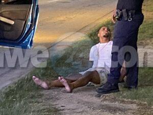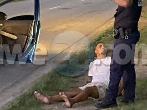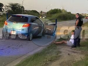 Diadomingo mainta despues cu tur e clubnan nocturno a sera polis a tene un vehiculo na bista y a para esaki riba Sasakiweg. Polis a bay atende cu e chauffeur ya cu e tabata core cu un taira flat, ora bay atende a nota cu e ta bao influencia y a detene. Ora a tira un bista bon den e auto a bin descubri droga y a confisca esaki.