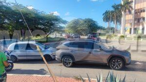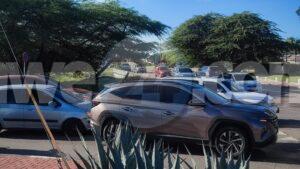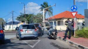 Diabierna mainta un oficial di e brigada motorisa a bin topa cu un accidente na e rotonde banda di Banco di Caribe. A bin resulta cu un chauffeur sin ningun papel na ordo no a regula su velocidad ni a mantene distancia a bay dal tras di un otro su dilanti. Afortunadamente ningun hende a resulta herida.