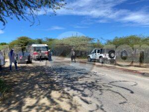 Diasabra merdia a drenta informe di cu un Jeep lo a pega na candela durante coremento, mesora a dirigi tanto polis como bombero na e sitio. Na nan yegada a bin nota cu aki ta trata di un Jeep di huur cu turista. A hayanan ta purba di contene e candela. Bomberonan a tuma over y a paga e candela. Polis a avisa e compania di e Jeepnan aki.