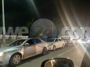 Diasabra anochi durante patruya polisnan a bin topa un accidente na De La Sallestraat, mesora nan a baha atende esaki unda ta trata di un accidente di cadena unda nan a dal un tras di e otro. Afortunadamente ningun hende a resulta herida.