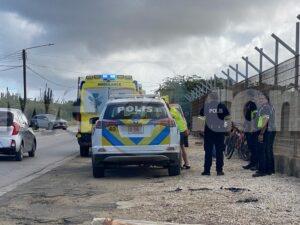 Dialuna mainta un patruya a bin topa na Tanki leendert, cu un incidente unda cu un hende lo a resulta herida, mesora a baha atende y a bin compronde cu aki ta trata di un turista ciclista femenino cu a cay cu bicicleta y e ta sinti su schouder fractura. Polis a pidi pa ambulans na e sitio. Na yegada di e ambulans nan a atende e victima y mester a transporte hospital pa tratamento mas avansa.