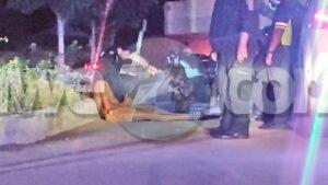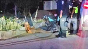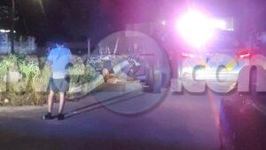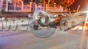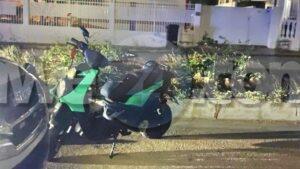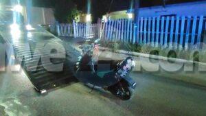 Despues di e informe di atraco na Kam Man polisnan a mobilisa pa e sitio. Un hoben di 17 aña riba un scooter a nota polis y a purba huy bay pero na Sabana Basora ela dal abao y herida su mes y nan a logra detene. Como cu e ta herida a pidi ambulans p’e. Na yegada di e ambulans nan a atende y a transporte cu escolta policial pa Centro Medico.