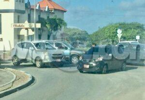 Diahuebs mainta a drenta informe di un accidente na rotonde Piedra Plat, mesora a dirigi un patruya na e sitio. Na yegada di e patruya a bin compronde cu aki ta trata di un accidente unda falta di preferencia ta e causa ademas un chauffeur no tin rijbewijs. Afortunadamente ningun hende a resulta herida.