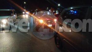 Diabierna anochi net ora e accidente di e auto cu a bolter a sosode un otro accidente di cadena unda e chauffeur di un Nissan Kicks a bay dal tras di un Hyundai y esaki consecutivamente a bay dal tras di e Mitsubishi cu tabata su dilanti aki tambe afortunadamente ningun hende a resulta herida.