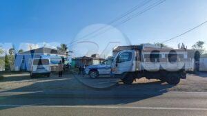 Diamars mainta a drenta informe di un accidente na Rooi Santo, mesora a dirigi un patruya na e sitio. Na yegada di e patruya a bin compronde cu aki ta trata di un accidente entre un auto y un truck. Afortunadamente ningun hende a resulta herida. Pero e chauffeur di e truck no tabata tin rijbewijs pa core e truck.