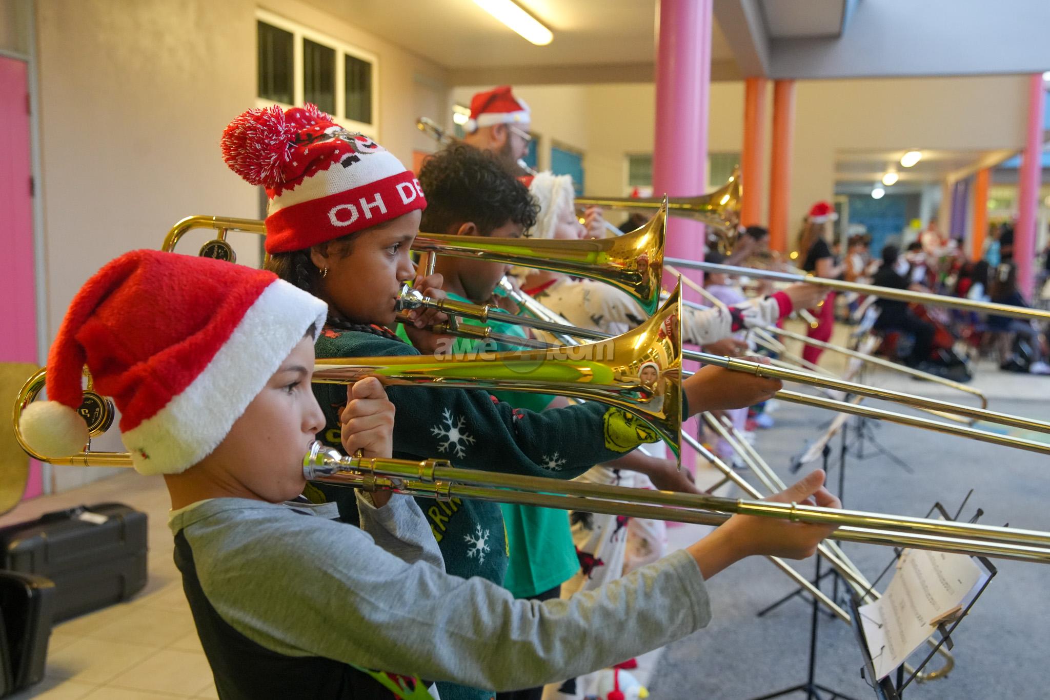 ORANJESTAD: Recientemente, Minister di Enseñansa y Deporte Endy Croes a acudi na e Show di Pasco di Leerorkestna Prinses Amalia Basisschool. Alrededor di 360 alumno di Prinses Amalia Basisschool a duna un bunita presentacionmusical. E alumnonan di klas 3, 4. 5 y 6 a toca diferenteinstrumento, entre otro, viool, cello, trompet, trombone, dwarsfluit y clarinet. Tambe e alumnonan di klas 1 y 2 a cantadiferente cancion di Pasco. Un bunita presentacion di e muchanan talentoso di Prinses Amalia Basisschool. Minister Endy Croes ta gradici Leerorkest cu ta siña e muchanan cu hopi amor y ta contribui den e desaroyo musical di Pais Aruba. Pa finalisa, e mandatario di Enseñansa ta felicita e alumnonan di Prinses Amalia Basisschool cu nan tremendopresentacion di Leerorkest y ta desea ful e team di PrinsesAmalia Basisschool feliz dianan di fiesta.