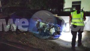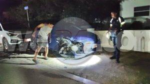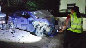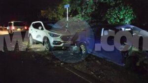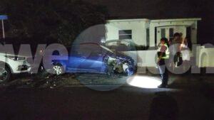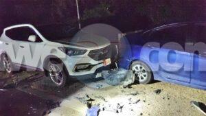 Diadomingo madruga a drenta informe di un accidente na Palm Beach banda di Del Rey Appartments, mesora a dirigi un patruya na e sitio. Na yegada di e patruya a bin compronde cu aki ta trata di un accidente unda cu e chauffeur di un Kia Sorento a baha caminda dal 2 auto staciona y un cura di cas despues di e impactonan aki e Kia Sorente a bay termina kibra den unda e chauffeur a baha y core bay na pia den e scuridad. Afortunadamente ningun hende a resulta herida pero hopi daño y gasto a keda atras.