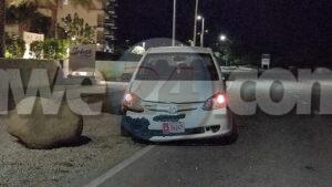 Diabierna anochi a drenta informe di un accidente dilanti Embassy Suites, mesora a dirigi un patruya na e sitio. Na yegada di e patruya a bin compronde cu aki ta trata di un accidente unda e chauffeur a baha caminda dal riba un di e piedranan grandi poni banda di caminda. Adortunadamente ningun hende a resulta herida.