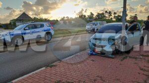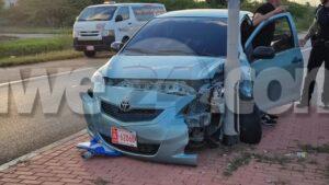 Dialuna mainta a drenta informe di un accidente dilanti di Ritz Carlton, mesora a dirigi un patruya na e sitio. Na yegada di e patruya a bin compronde cu aki ta trata di un accidente unda e chauffeur di un Toyota Yaris a kita su bista for di caminda y a haya su mes cu un sorpresa di un isleta y a dal subi esaki y bay dal riba un palo di lus cu tin ey riba. Afortunadamente ningun hende a resulta herida.