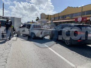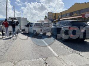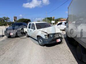 Diabierna mainta a drenta informe di un accidente banda di Los Cafeteros, mesora a dirigi un patruya na e sitio. Na yegada di e patruya a bin compronde cu aki ta trata di un accidente unda cu e chauffeur di pick-up bayendo pariba pa no dal tras di e s.u.v su dilanti a kita na man robes y a bay dal riba un boxtruck di trafico contrario bons y bin raspa e s.u.v. tambe. Afortunadamente ningun hende a resulta herida.