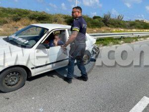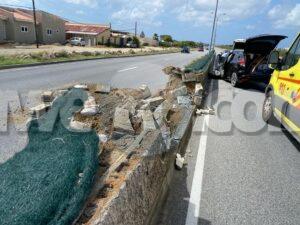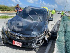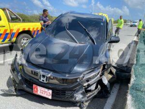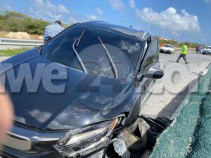 Diabierna merdia a drenta informe di un accidente cu hende herida riba E.J. “Watty” Vos blvd. pabao di e brug di Ponton, mesora a dirigi tanto polis como ambulans na e sitio. Na yegada di e patruya a bin compronde cu aki ta trata di un accidente unda cu e dama chauffeur di un Honda HRV no a ripara cu tabata tin un Toyota Tercel para banda di caminda cu flat tire y ultimo ora a purba desvia p’e pero e impacto tabata inevitable y a dal e parti patras den banda y bay banda robes dal e median di bloki kibra debi na e impactonan aki tanto e dama chauffeur di e Honda como tambe e chauffeur di e Toyota a resulta herida. Na yegada di e ambulansnan nan a atende e victimanan y a transporta nan pa hospital.