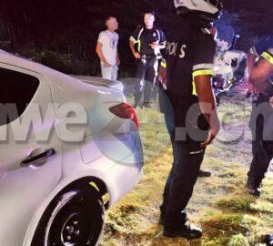 Diasabra madruga durante patruya banda di e hotelnan polis a nota un auto cu tabata coriendo malisimo polis a bay par’e y a lag’e supla y e resultado a indica cu ela surpasa e limite permiti y a detene e chauffeur, e tabata tin otro hende den e auto y esaki a keda na pia.
