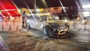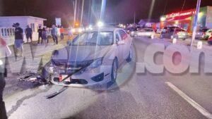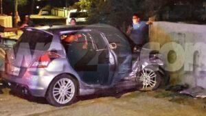 Dialuna anochi a drenta informe di un accidente cu hende herida na Shiribana, mesora a dirigi tanto polis como ambulans na e sitio. Na yegada di e patruya a bin compronde cu aki ta trata di un accidente unda cu un Suzuki Swift a bay kita pa un auto cu a bira su dilanti y pa no dal den dje ela desvia pero ela bay dal den otro auto y despues bay termina riba un muraya. Debi na e fuerte impacto ela resulta herida y e porta di su banda a keda pega y no por a sali for di eynan y a pidi e equipo di rescate di bombero pa bin corta e porta. Na yegada di bombero no tabata necesario mas pa corta e porta ya cu e chauffeur logra schuif y sali for di e otro porta. Ambulans a atende e victima y a transporte pa hospital.