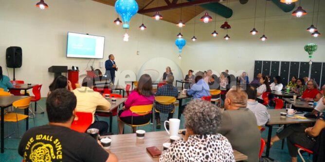 ORANJESTAD: Recientemente, Minister di Enseñansa y Deporte Endy Croes a haci un bishita oficial na John F. Kennedy Education Center Aruba, unda cu a reuni cu e directora Anne-Marie Proveyer y henter e team di DirectieOnderwijs Aruba. Minister Endy Croes a duna un discursodeseando nan un aña 2024 fructifero y a indica cu e aña aki lo sigui traha riba recomendacion 1, 2, 3, 6, 9, 10 y 11 di e Doorlichting van het Arubaanse Onderwijsbestel. Durante e ocasion special aki, a brinda cu druif pa duna inicio na un aña2024 exitoso. Ademas, Minister Endy Croes a sorpresa e team di Directie Onderwijs cu e gran noticia cu nan FormatieRapport y Instellingbesluit ta aproba. Desde aña 2017,Directie Onderwijs a haci un peticion pa haya aprobacion di nan Formatie Rapport y na aña 2021 cu Minister Endy Croes a tuma encargo di Ministerio di Enseñansa, nan peticion mas halto riba e lista tabata e Formatie Rapport. Pues, Minister Endy Croes a traha hopi duro riba esaki y final di aña 2023 a haya un conseho positivo di Departamento di RecursoHumano (DRH). December aña pasa, Minister Endy Croes a presenta e Formatie Rapport na Conseho di Minister y esaki a keda aproba. E mandatario di Enseñansa a sorpresa tur empleado y staf di Directie Onderwijs cu nan FormatieRapport y Instellingsbesluit ta aproba y ta valido desde 1 di januari 2024. Esaki ta nifica cu e departamento lo siguiprofesionalisa, crece y yega na 83 empleado den e structuranobo. Esaki sigur tabata un gran noticia pa e team completo di Directie Onderwijs. Minister Endy Croes a desea nan un bon aña 2024 den nomber di Gabinete Wever-Croes II y a haci un apelacion pa sigui traha hunto den team e aña aki pa logra tur e proyectonan di enseñansa.