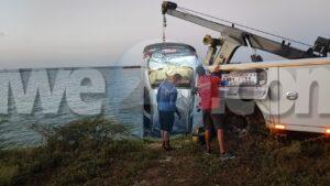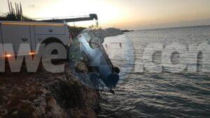 Diahuebs madruga durante control di Kustwacht na nos costanan a bin descubri un auto cu su wielnan na laira den lama na Spaans Lagoenweg, mesora nan a avisa polis kendenan na nan turno a avisa bombero. Na yegada di bombero mesora 2 bombero a baha den e lama pa asina mira si por tin hende aden y tambe den e baul. Pero no tabata tin ningun hende den e vehiculo. E auto mes ta un Toyota Yaris blauw cu number A50722. Na e sitio por a mita claramente cu e auto a ser manda den e lama poniendo un bloki riba e trot y a hala e palanca den D di drive y e auto a bay cay den lama. Takelwagen a ser busca pa saca e auto mas pronto posibel for di lama. Ora a saca e auto a mira e parti abao di e stuurwiel kibra y un bloki cual lo a ser usa pa manda e auto den lama. E mesun madruga aki tambe nan a horta un Toyota Yaris silver A67728 for di Driemasterstraat. Si tin hende cu por a mira e auto aki yama polis mesora.