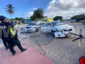 Diasabra atardi a drenta informe di un accidente cu hende herida na Boegoeroei, mesora a dirigi tanto polis como ambulans na e sitio. Na yegada di e patruya a bin compronde cu aki ta trata di un accidente unda cu e chauffeur di e Toyota Yaris un homber di 88 aña a bay subi caminda pero un wiel a cay den un buraco y e otro wiel a draai den bashi riba e tera riba e acera y a keda pega mientras e Toyota Corolla a dal e y a saca e Yaris di su pega. Debi na e impacto ambos chauffeur a resulta herida. Na yegada di e ambulans a atende ambos chauffeur pero esun di 88 aña si mester a bay hospital pa mas tratamento.