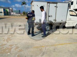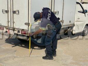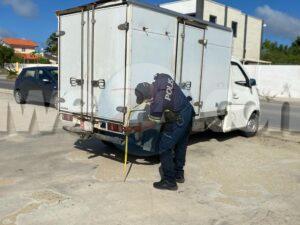 Diadomingo atardi a drenta informe di un accidente na Saliña Cerca pero e auto ta siguiendo e box pickup cu a dal e y e no kier para bayendo zuid, mesora a mobilisa patruyanan pa e area di Palm Beach. E persecion a sigi bayendo Oranjestad. Polis a logra topanan na Schotlandstraat y eynan polis a logra pare. Eynan despues cu e patruya a tende e declaracion contradictorio di e chauffeur di e boxtruck unda e ta nenga di a dal e otro auto a solicita presencia di departamento di trafico pa e haci e investigacion. A bin resulta palpablemente cu ta e a dal e auto.