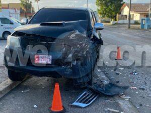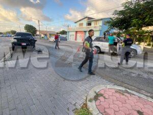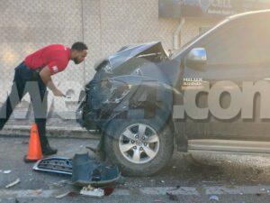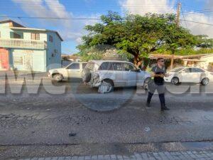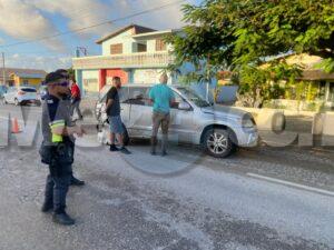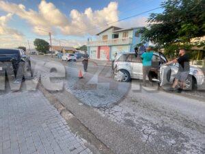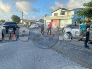Diadomingo atardi a drenta informe di un accidente cu hende herida na Tanki Leendert, mesora a dirigi tanto polis como ambulans na e sitio. Na yegada di e patruya a bin compronde cu aki ta trata di un accidente unda cu un chauffeur a brake diripiente riba e caminda muha y a purba desvia pero e pickup a sigi slip dal e Suzuki na e skina drechi manda esaki bay dal den banda di un auto contrario. Den e Suzuki tabata tin un dama 4 luna na estado cu tabata keha dolor di nek. Na yegada di ambulans nan a atende e dama y a transporte pa hospital pa un control mas extensivo.