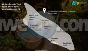 Por tuma nota cu 61.4% di e Short-Term Vacation Rentals activo ta situa den region di Noord/ Tanki Leendert, 27.6% ta den region di Oranjestad, 4.1% ta den region di Savaneta, 2.6% ta den region di Santa Cruz, 2.3% ta den region di Paradera y 1.6% ta den region di San Nicolaas.