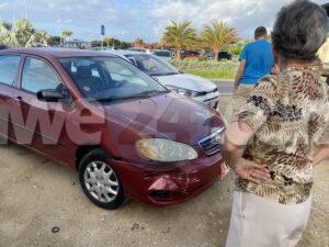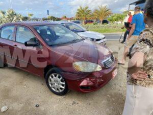 Diamars mainta a drenta informe di un accidente unda e dama chauffeur di un Toyota Corolla no a regula su velocidad ni a mantene distancia a bay dal tras di e auto su dilanti. Afortunadamente ningun hende a resulta herida den a accidente aki