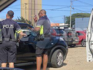 Diahuebs mainta un patruya den Middenweg a nota un chauffeur commete un infraccion, mesora a para e chauffeur y atende cun’e pa e infraccion cometi y a splica e chauffeur con e mester percura pa haci y respeta e leynan di trafico.