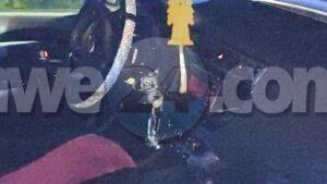 Diahuebs anochi a drenta informe di cu ladronnan a horta un auto, un rato despues a señala e auto aki accidenta na e bocht di Montaña. Polis mesora a bay na e sitio y a topa cu un hoben sospecha cu lo tabata cu e auto. Pero ora a mira e foto di e camara di seguridad su estatura no tabata cuadra cu esun cu lo a bay cu e auto. Pero den su poder polis a haye cu un cuchiu y un cedula cu no ta di dje y polis a detene toch. Polis a confisca e auto pa mas investigacion.