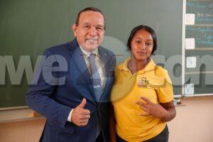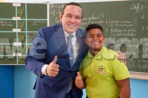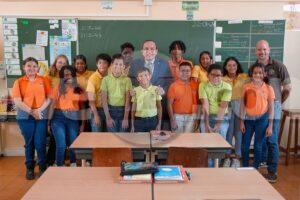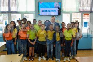 ORANJESTAD: En conexion cu Dia di Betico, Minister Endy Croes ta bishitando diferente scol rond di Aruba y dialuna ultimo a toca turno na Colegio Santa Teresita den curason di San Nicolas. Cabesante di e scol Sra. Janine Soliana – Vingal a ricibi e mandatario di Enseñansa y Deporte. Den un esfera ameno Minister Endy Croes a combersa cu e alumnonan di klas 5 y 6, unda cu a splica nan di e importancia di e celebracion di 25 di januari, historia, lucha y logronan di nos Libertador Gilberto François ‘Betico’ Croes. E alumnonan a scucha cu hopi atencion y a haci basta pregunta. Pa finalisa, Minister Endy Croes a expresa cu e tabata un mainta hopi exitoso. Alabes ta gradici cabesante di scol, docente- y alumnonan pa un mainta ameno. Minister Endy Croes ta desea henter Pueblo di Aruba un feliz Dia di Betico y ban hunto celebra e fecha aki en grande, esta dia 25 di januari proximo.