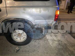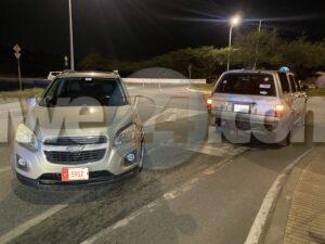 Diaranson anochi a drenta informe di cu tin un Chevrolet Trax di huur coriendo masha malo mes riba e caminda di Ponton bayendo nort mesora a cuminsa dirigi patruyanan pa e area ni un rato despues e persona informando polis ta informa cu e auto a caba di accidenta na e rotonde Noord banda di e post di e patruyanan motorisa. Na e momentonan ey e polisnan di e brigada motorisa cu tabata bayendo na e area a mira con e accidente a sosode. Nan a mira e auto subi e rotonde casi subi e isleta despues a bira na man drechi dal den banda di un Toyota 4-runner cu tabata bini di pariba para na e rotonde pa bay subi. Afortunadamente ningun hende a resulta herida. Polis a nota cu e chauffeur ta un dama di edad hulandes europeo di bishita na Aruba pero e dama tabata pata pata y polis a detene.