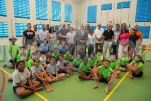 ORANJESTAD: Diamars mainta, Minister Endy Croes hunto cu Sport for Children Foundation di Hulanda, Sport for Youth Foundation di Aruba y representenan di diferente schoolbesturen a bishita e gymzaal di Scol Basico Washington. Manera ta conoci, den luna di december e proyecto di renobacion di e gymzaal a keda cla, unda a renoba e vloer, a verf e muraya y a drecha e dak. Recien, di 10 container cu hopi material deportivo a yega Aruba. En conexion cu celebracion aki a invita diferente schoolbesturen, unda cu a duna un demostracion di con pa uza e materialnan. Sport for Youth Foundation di Aruba ta un fundacion cu ta trece diferente material deportivo di segunda mano renoba for di Hulanda pa Aruba. Sports for Children di Hulanda ta haci entrega di e materialnan deportivo di segunda mano ful renoba completamente gratis na Sport for Youth Foundation di Aruba. Unabes cu Sport for Youth Foundation di Aruba ricibi e materialnan aki, ta entrega nan na diferente scol y centro deportivo na Aruba.