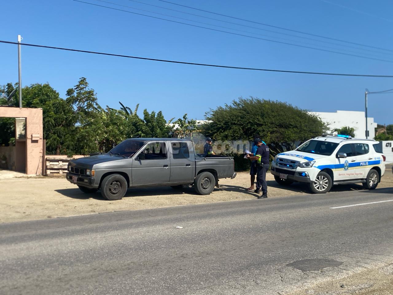Diamars mainta polisnan atento di distrito 2 (Noord) a para un pick-up cu asina e chauffeur a bira nervioso y a kita cara polis na Moko a dun’e ordo pa para y a revisa e documentonan di e vehiculo pa wak si esakinan ta na ordo. Despues cu polis a atende cun’e e por a sigi su rumbo.