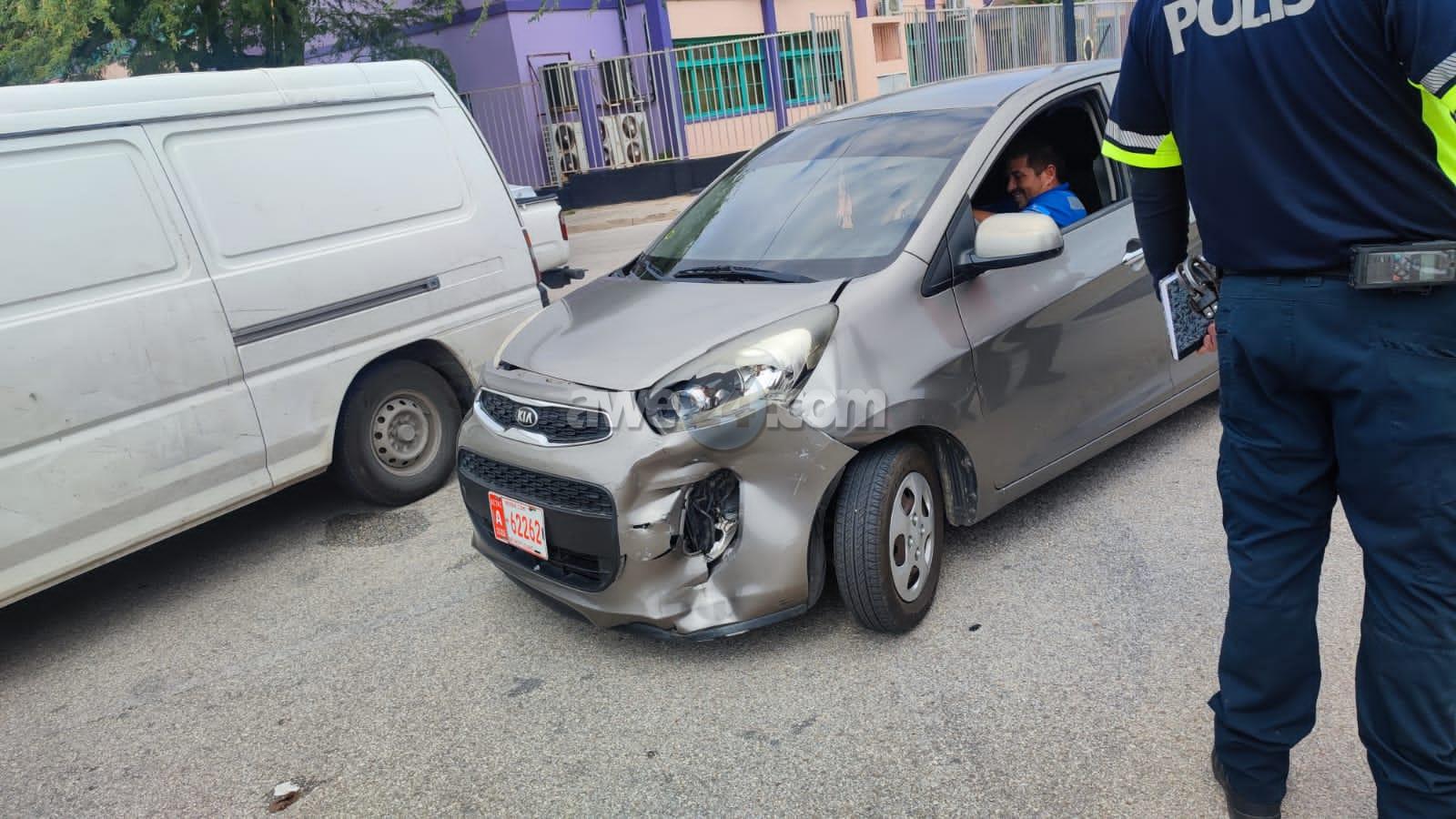 Diaranson merdia a drenta informe di un accidente cu hende herida na Morgenster banda di Colegio Conrado Coronel. Mesora a dirigi tanto polis como ambulans na e sitio. Na yegada di e patruya a bin compronde cu chauffeur di un auto shinishi biniendo un poco duro lo a dal den un otro auto cu tabata saliendo for di e parkinglot. E impacto tabata fuerte y ambos vehiculo a haya daño. Na yegada di e ambulans nan a atende cu e victima. Polis a tuma datos di e accidente aki.