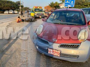 Dialuna mainta a drenta informe di un accidente cu hende herida dilanti Pencro na Tanki Flip, mesora a dirigi tanto polis como ambulans na e sitio. Na yegada di e patruya a bin compronde cu aki ta trata di un accidente entre un scooter y un Nissan March unda esnan riba e motociclista a resulta herida. Polis a compronde cu e dama pasahero riba e scooter a resulta herida unda a fractura su enkel y tabata keha di hopi dolor. Na yegada di e ambulans nan a atende e dama y a transporte pa hospital. Despues di un rato e motociclista a cuminsa keha y a bolbe pidi un otro ambulans na yegada di e ambulans nan a atende.