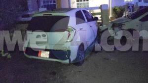 Diasabra madruga a drenta informe di un accidente na Macuarima, mesora a dirigi un patruya na e sitio. Na yegada di e patruya a bin compronde cu aki ta trata di un accidente unda e chauffeur di un Nissan Sentra blauw cla cu a perde control baha caminda bay dal un Toyota Yaris y un Kia staciona manda e Kia destrui un cura di cas. Djey ela core bandona e sitio na careda na pia lagando e auto atras. Polis a confisca e auto pa mas investigacion.