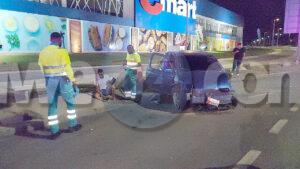 Diasabra madruga a drenta informe di un accidente cu hende herida banda di Cmart na E.J. “Watty” Vos blvd., mesora a dirigi tanto polis como ambulans na e sitio. Na yegada di e patruya a bin compronde cu aki ta trata di e chauffeur di un Toyota Yaris cu a perde control subi e median dal un palo di lus kibra bay riba caminda bek bay para na e espacio di bushalte. Debi na e fuerte impacto e chauffeur a haya un herida profundo na su cara. Na yegada di e ambulans nan a atende y transporte pa hospital.